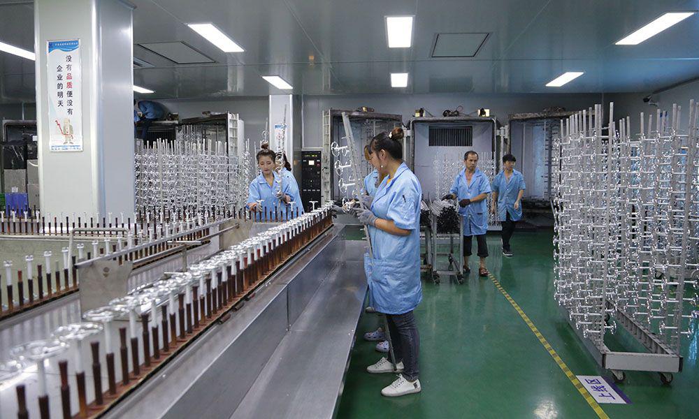 公司己配有2条现代化镀膜生产线、1条水转印生产线、1条喷漆专用线和90T-注塑车间。